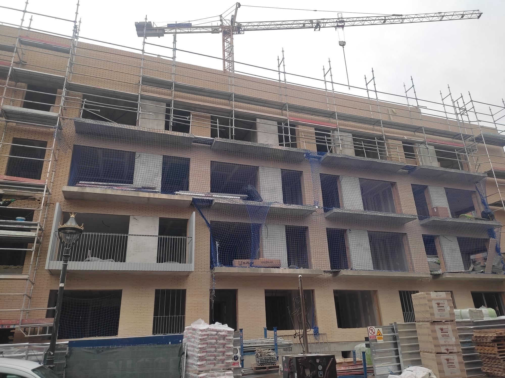Actualmente, se está ejecutando la fachada en la última planta con petos y ladrillo, mientras que en el interior se trabaja en la tabiquería y medianerías en todas las plantas.
