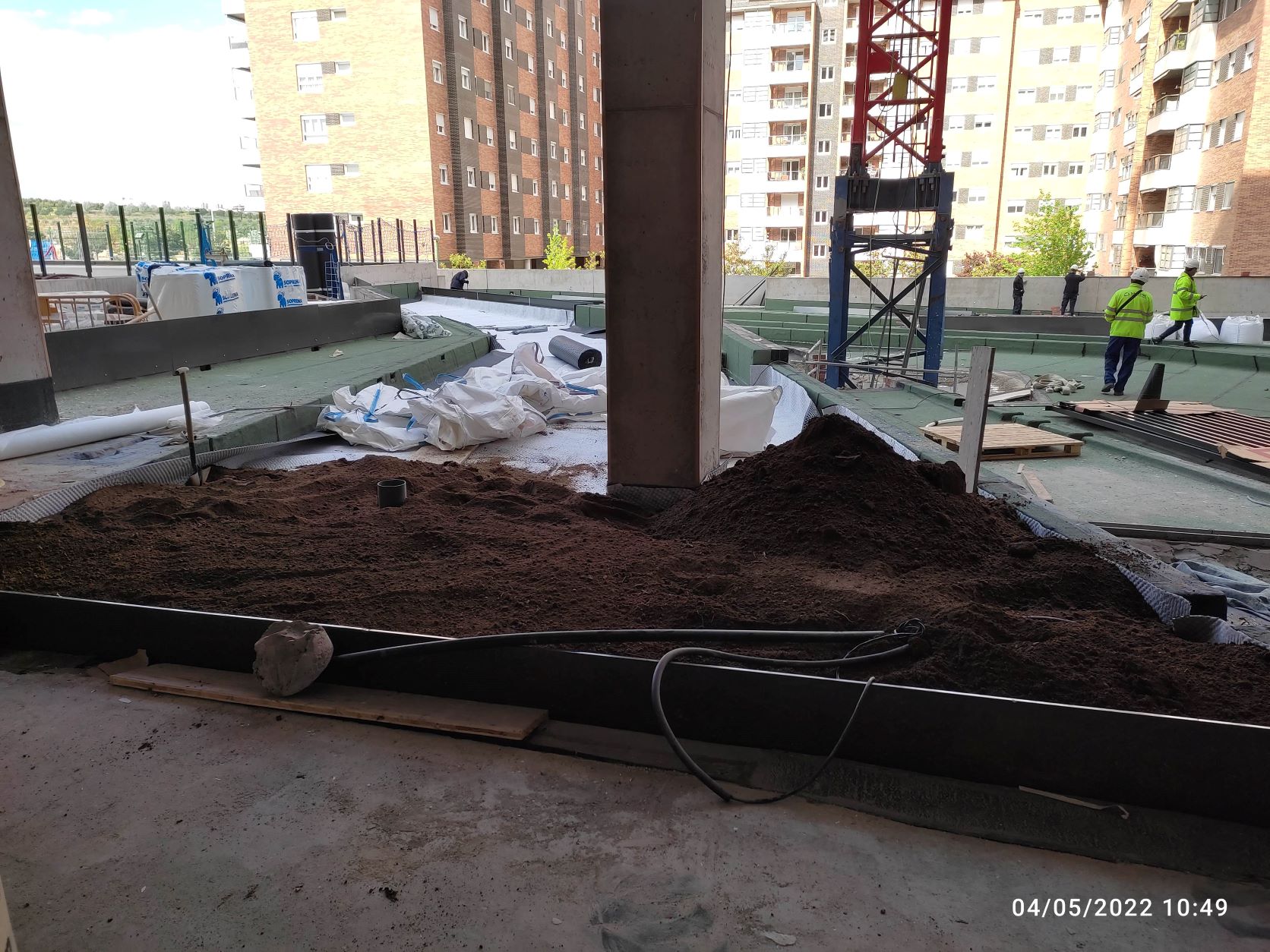En urbanización han concluido los trabajos de relleno de plataformas y comenzado el relleno de tierra en jardineras. Dando por finalizados los trabajos de revestimiento del vaso de piscina.