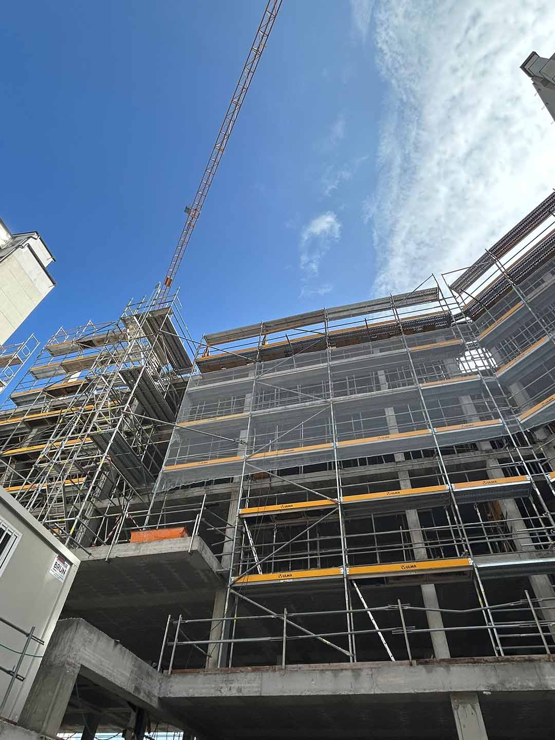 Avanza la estructura del edificio, alcanzando ya la quinta planta.