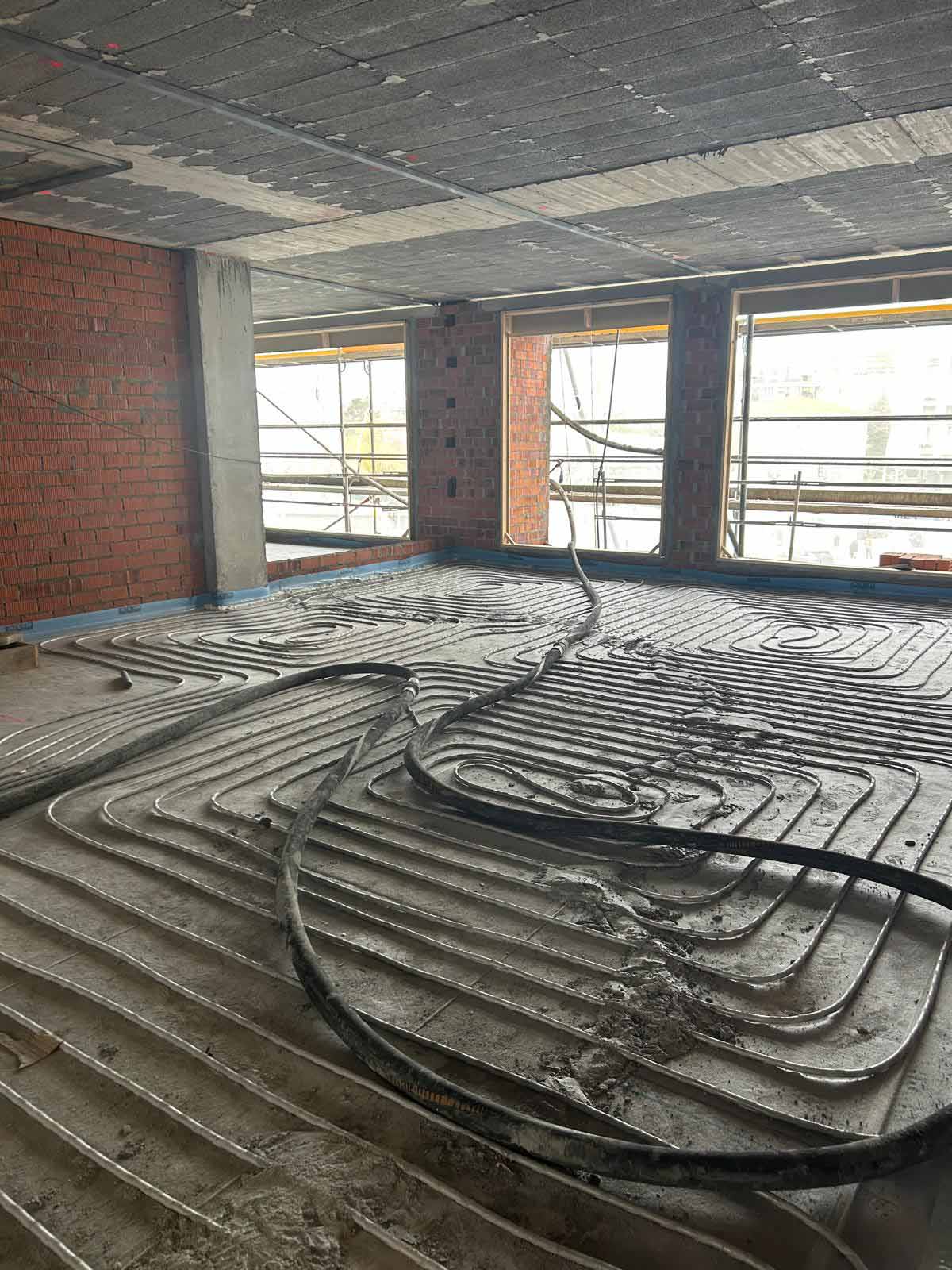Avanzan los trabajos de albañilería y ha comenzado la instalación de suelo radiante en el interior de las viviendas.