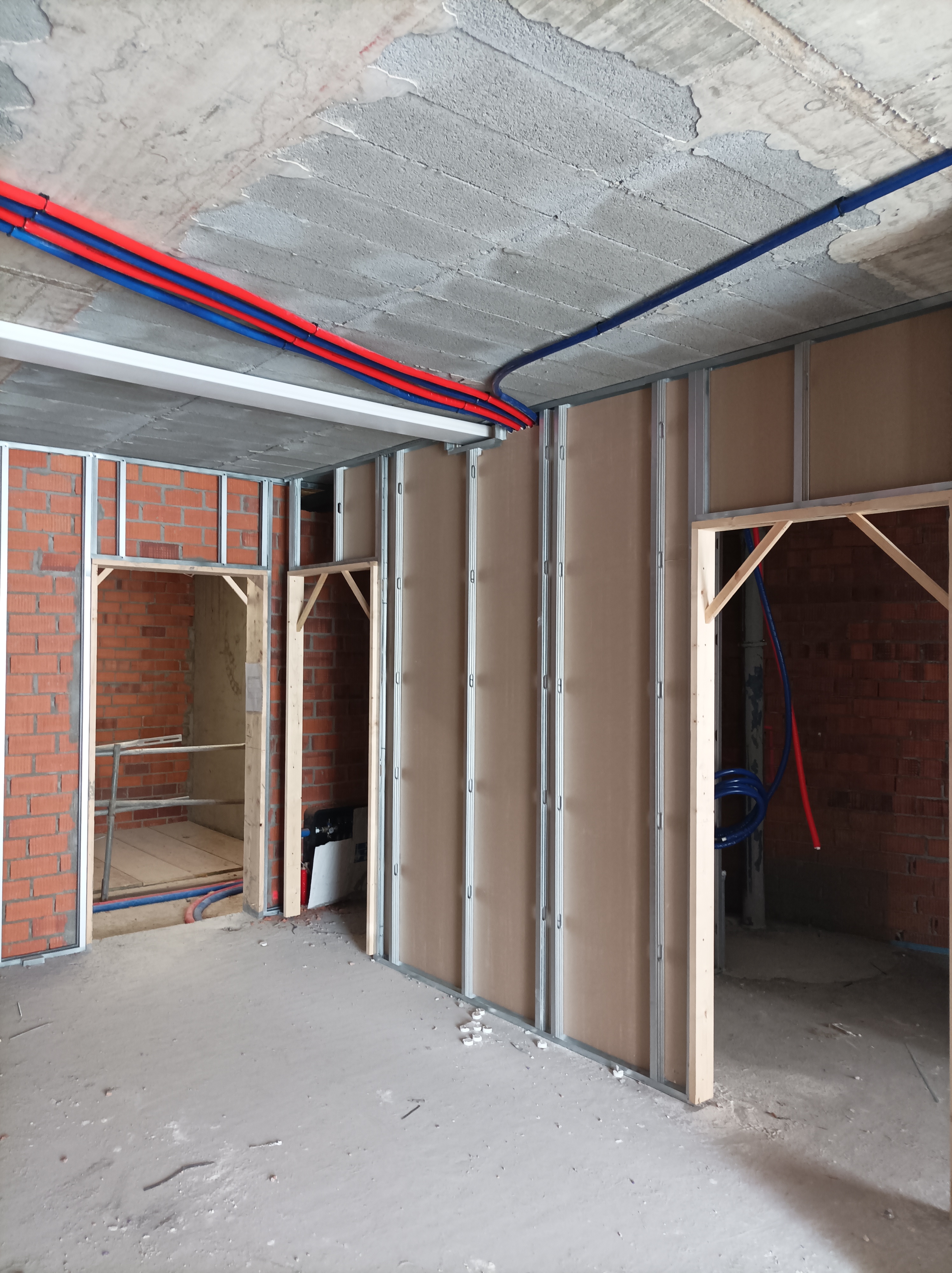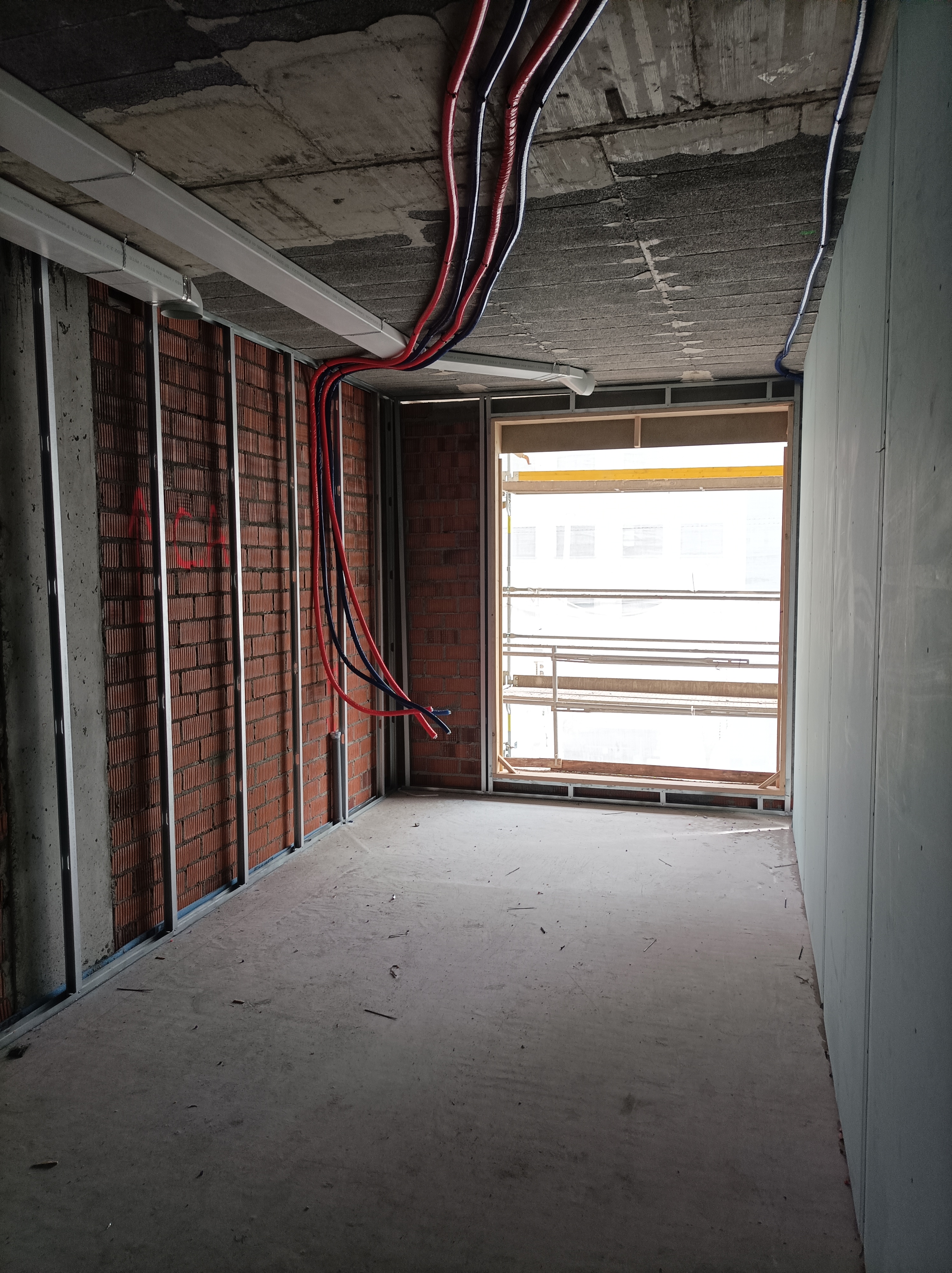 Han comenzado los trabajos de instalación de las primeras caras de la tabiquería seca. A su vez, se avanza en el interior de las viviendas con instalaciones de suelo radiante y ventilación.