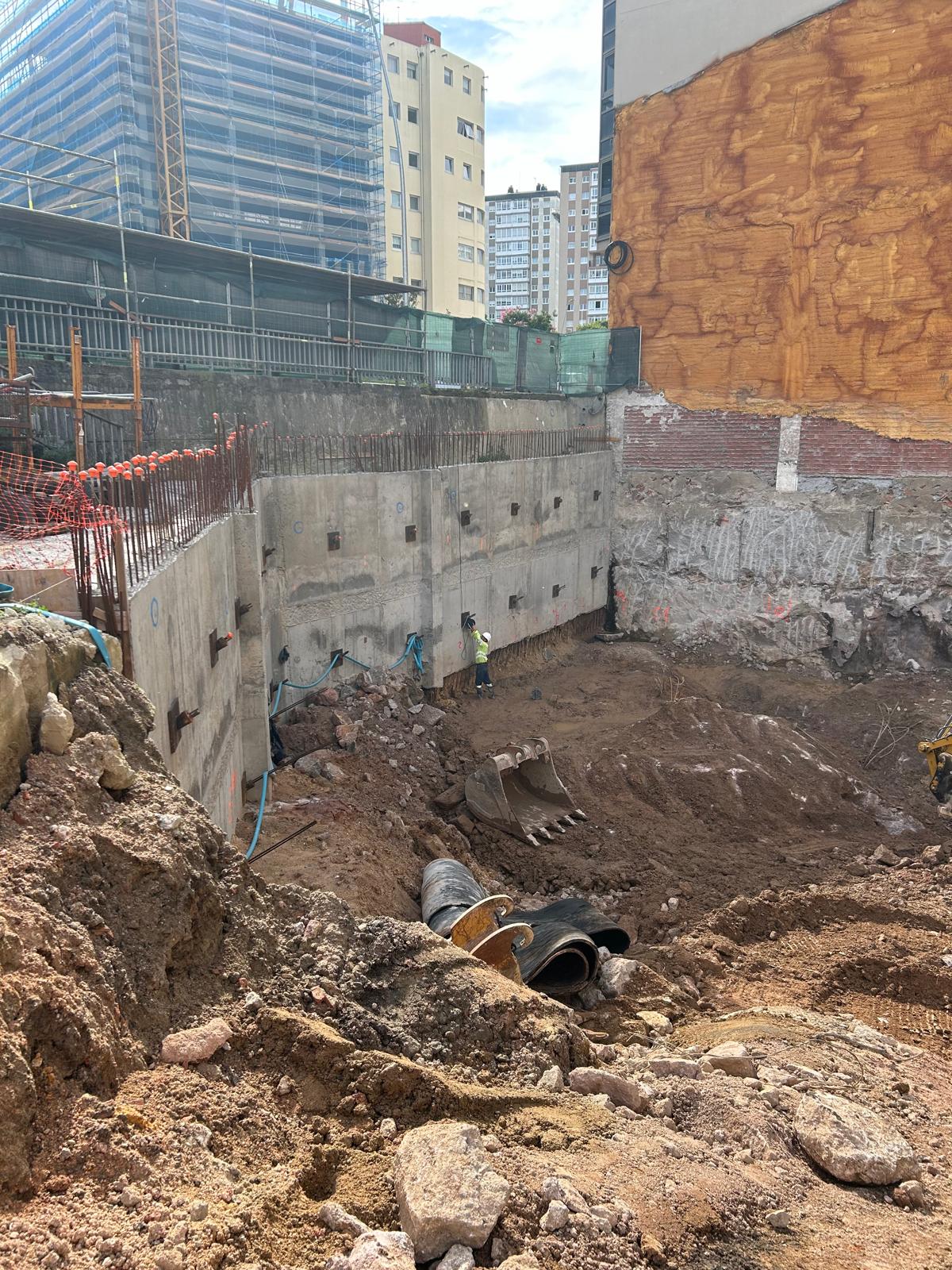 Continúan los trabajos de vaciado y contención de tierras, habiendo alcanzado en el punto más avanzado la cota de cimentación.