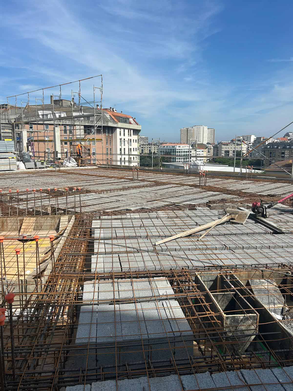 Continúa la ejecución de los trabajos de estructura en la planta séptima.