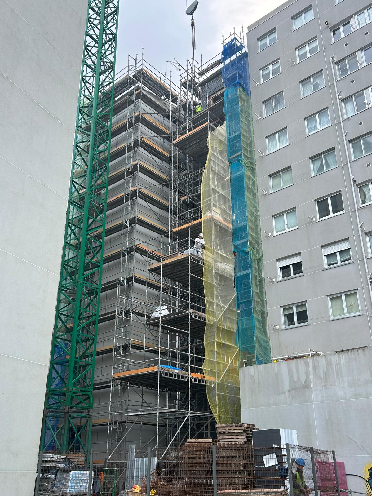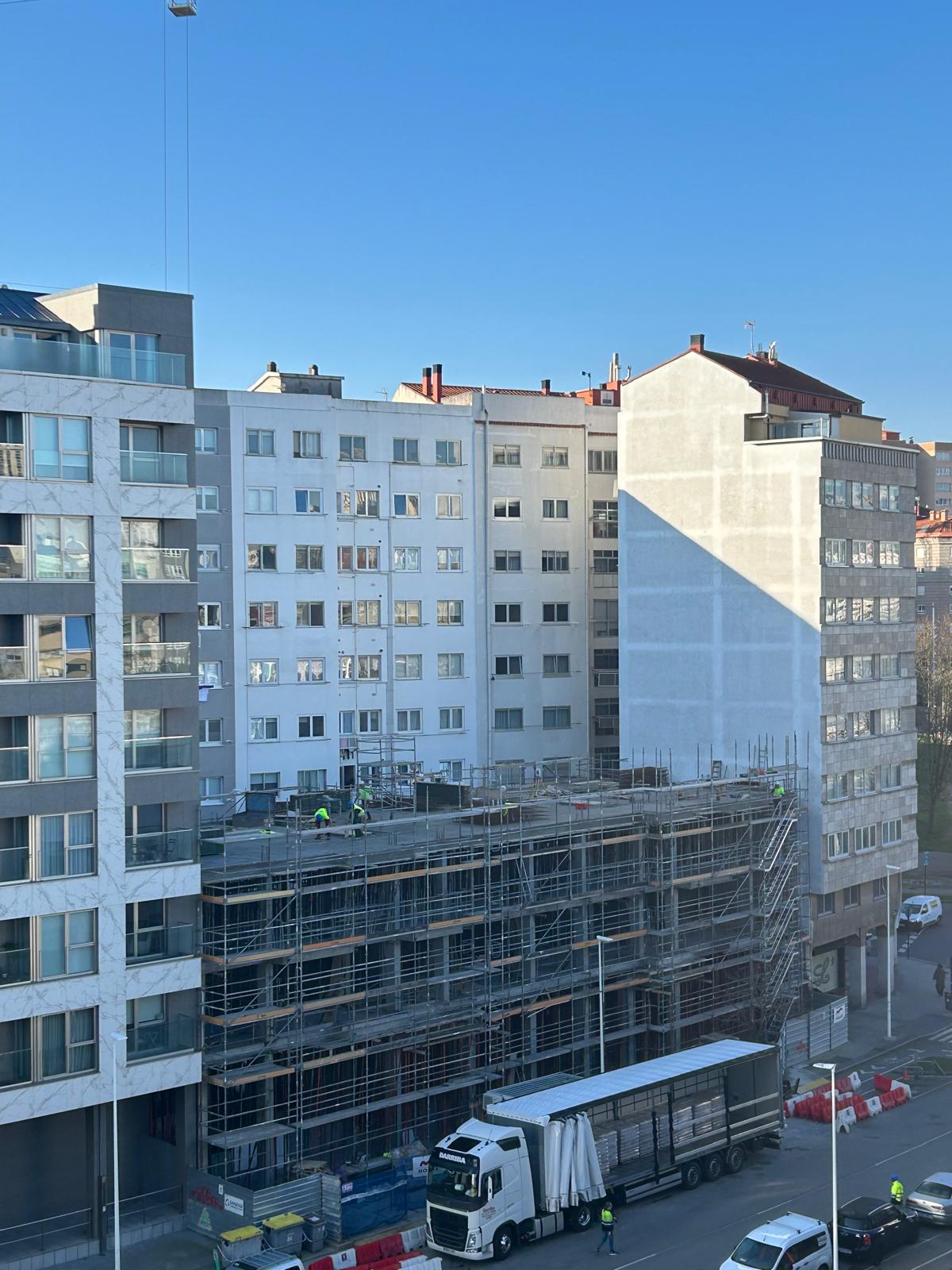 Continúa el montaje de cocinas en viviendas. Se ha comenzado a desmontar los andamios en fachada y progresan los trabajos de acabados en...