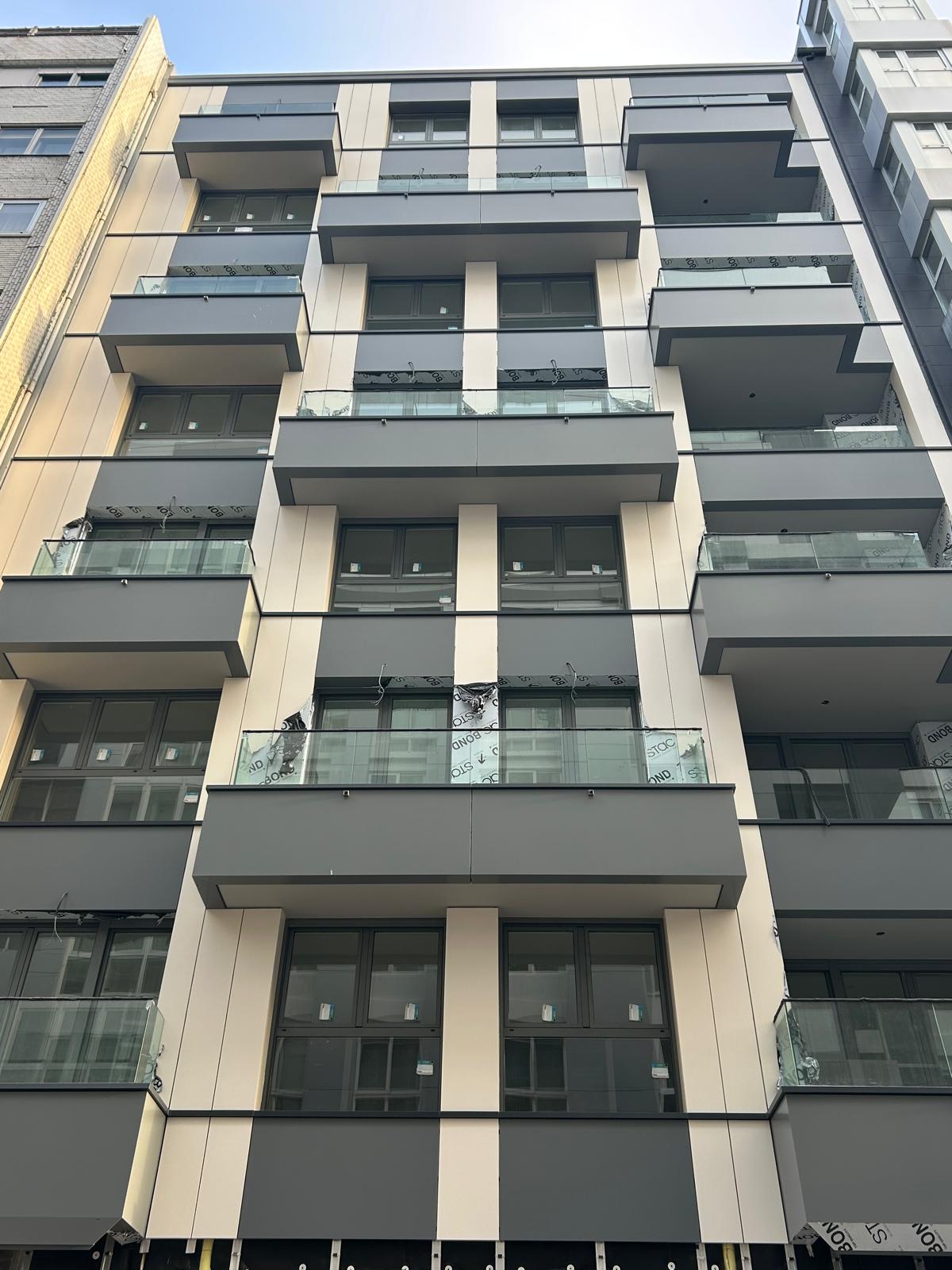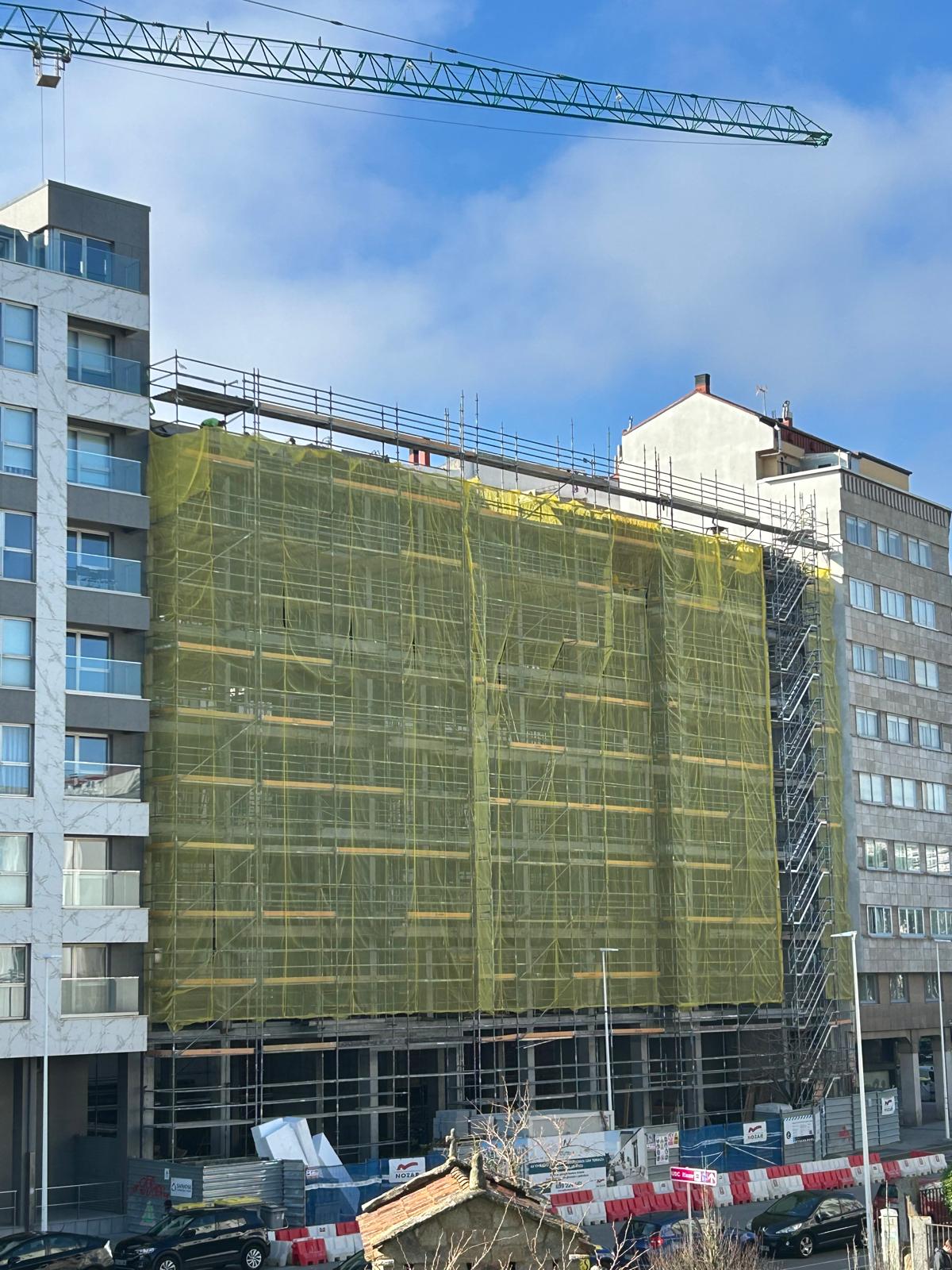 En la fachada exterior del portal 3 se ha instalado el composite y desmontado el andamio.