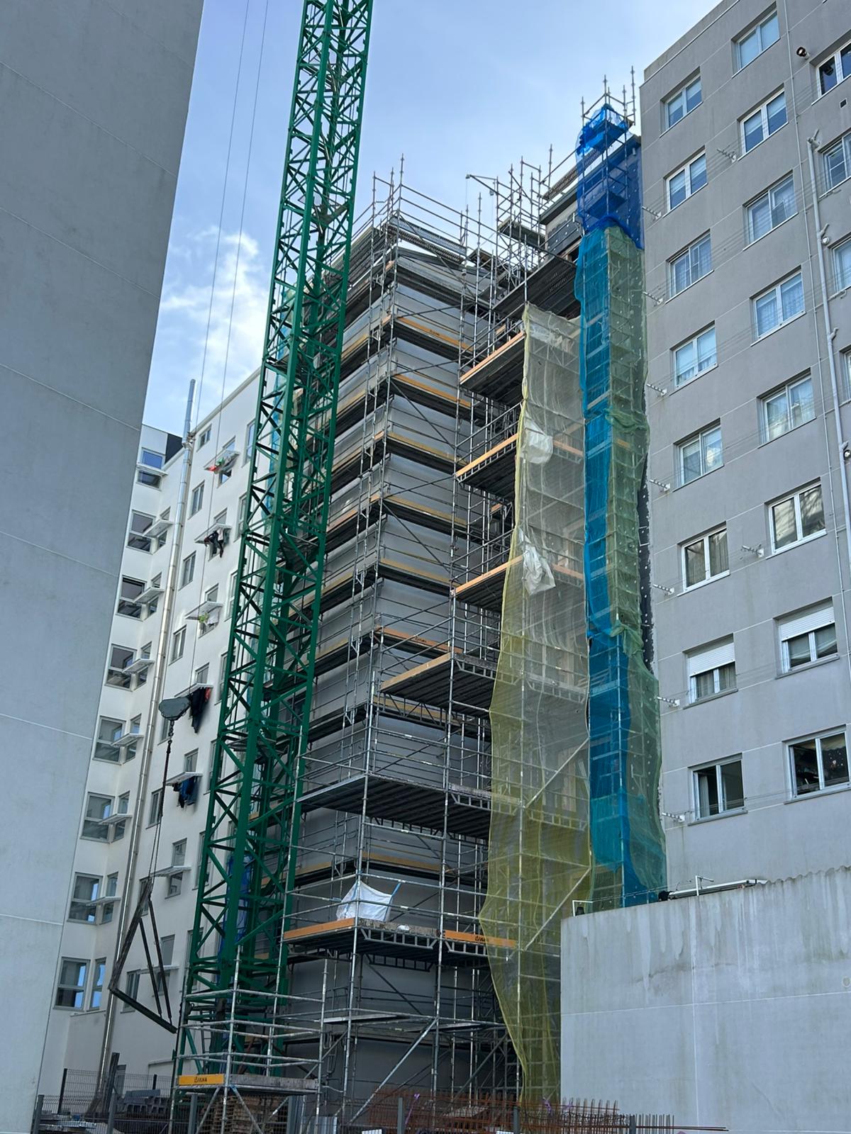 En los portales 1 y 2 la estructura ha alcanzado la cota del sótano -3. En el portal 3 avanza la ejecución de las instalaciones y tabiquería interior.