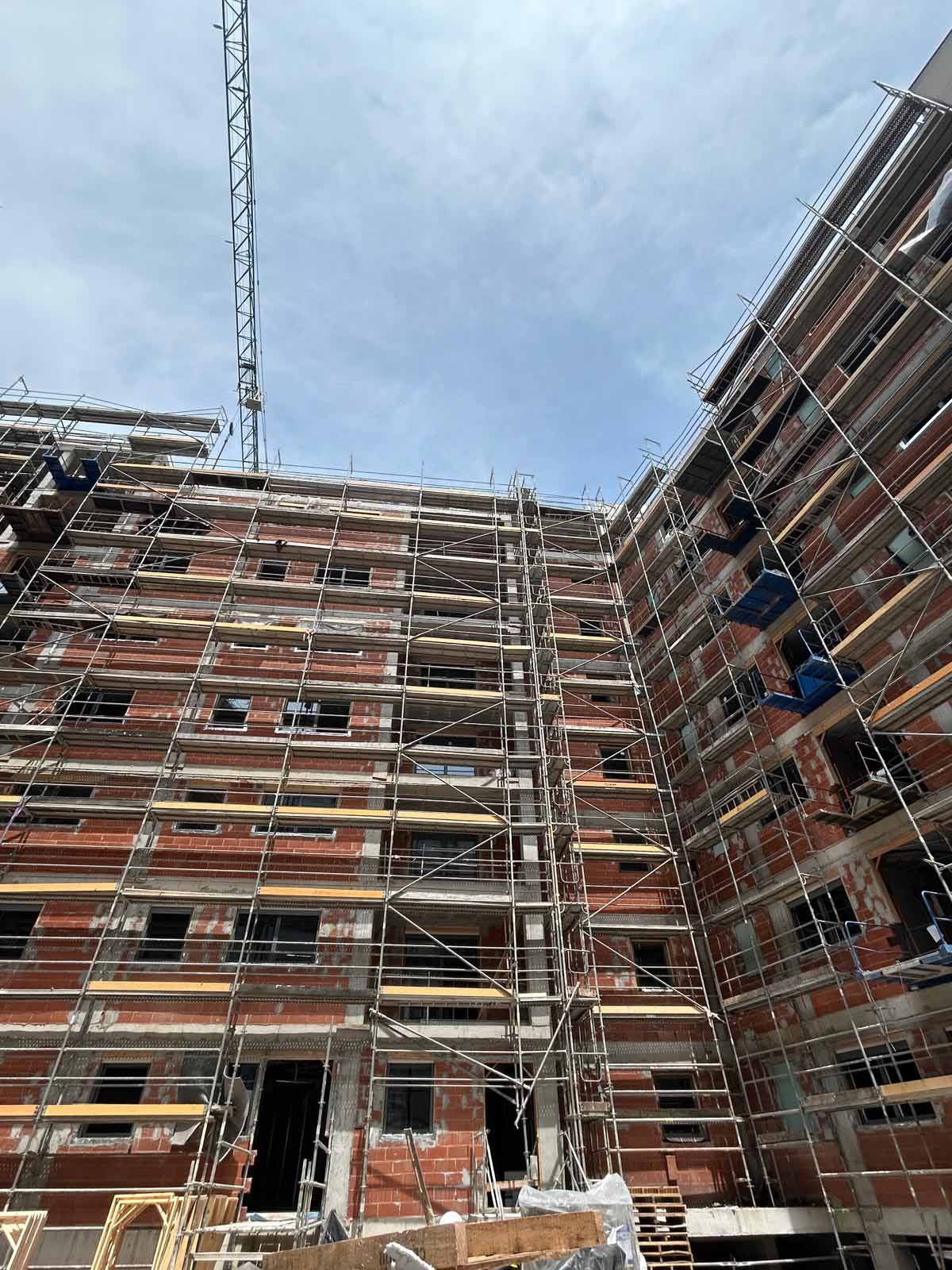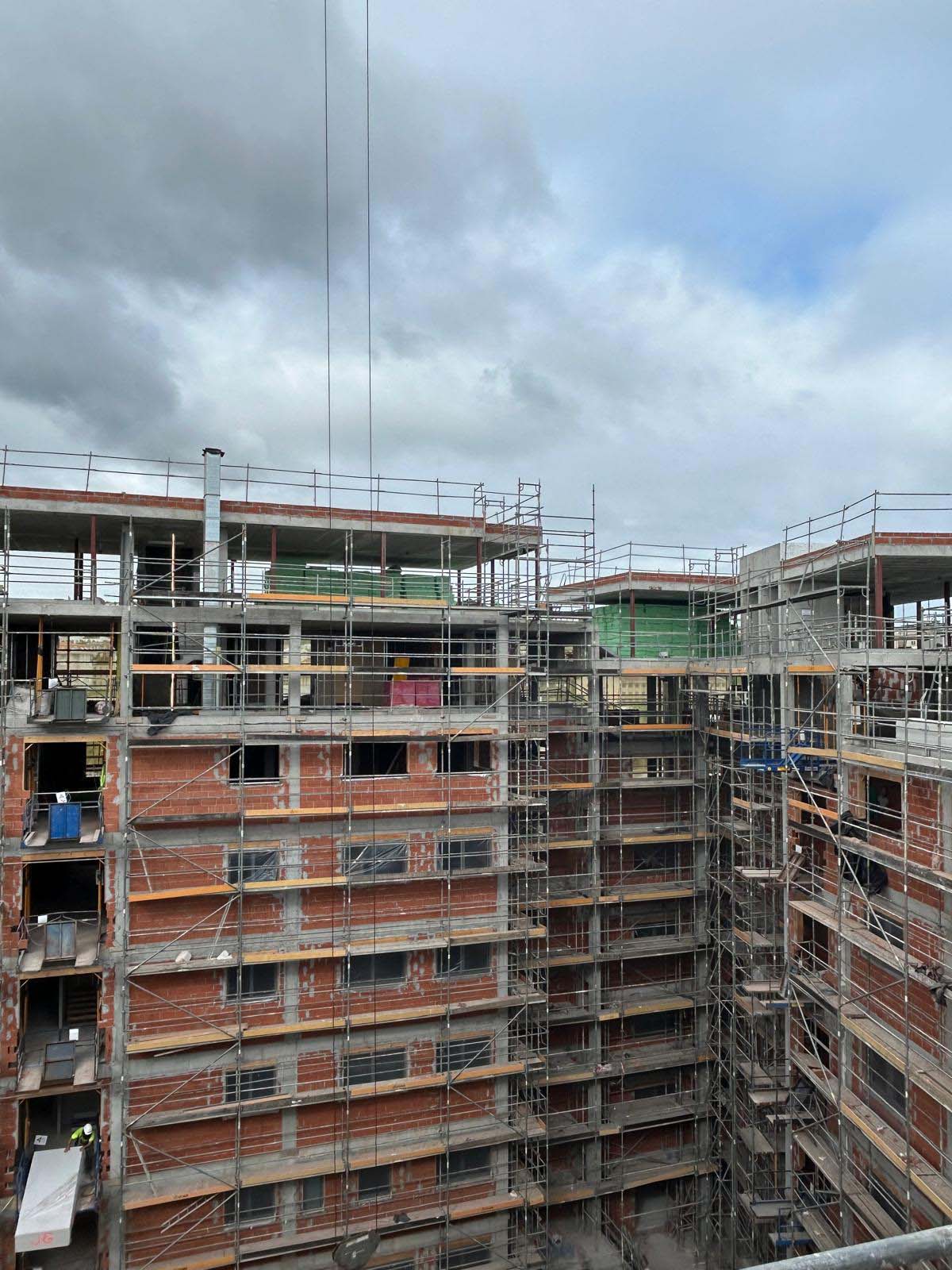 Continúa el cerramiento de las fachadas y se ha comenzado a instalar carpintería exterior.