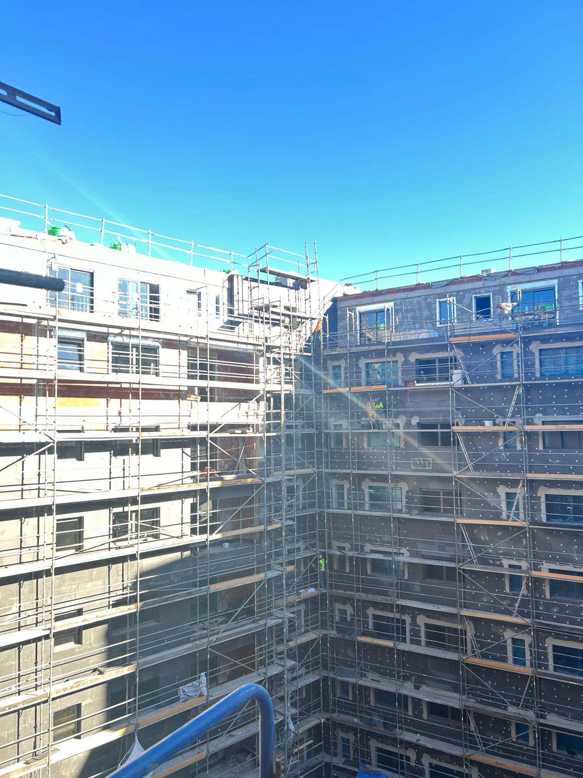Se avanza con la instalación de SATE en la fachada interior y la perfilería para el composite en la exterior.