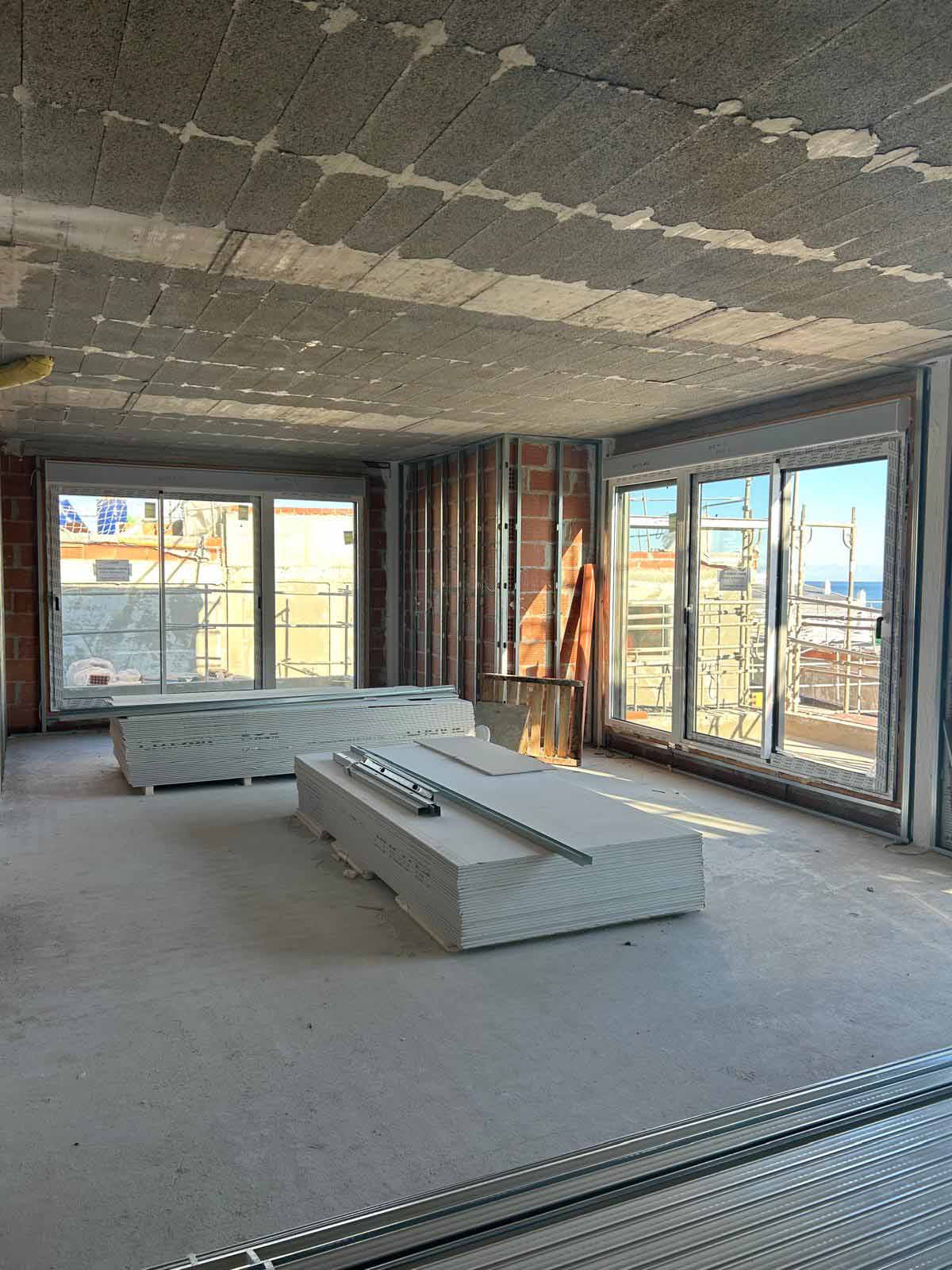 En el interior de las viviendas continúan los trabajos de compartimentación e instalaciones.