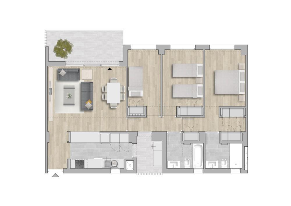 Planta Dorm P.Garaje Sup.Const Sup.Útil Sup.Terraza/Jardín Precio* Plano