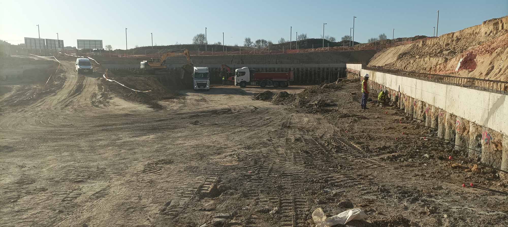 Se están concluyendo los trabajos de contención con el tensado de los muros y se ha iniciado ya la excavación hasta cota de cimentación.