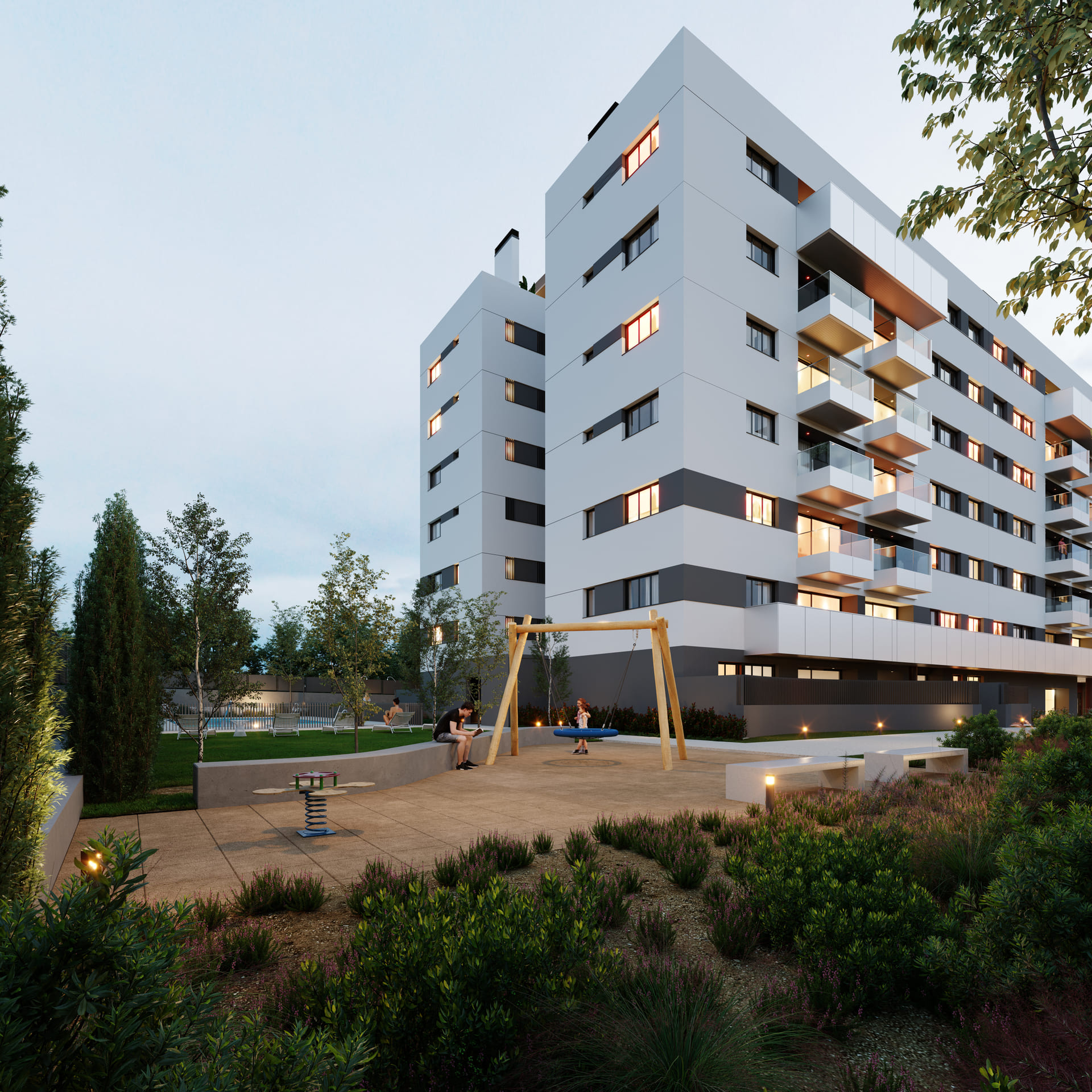 El proyecto está formado por 89 viviendas, áticos y bajos con jardín, de 2 y 3 dormitorios, y cuenta con jardín, piscina y local social.