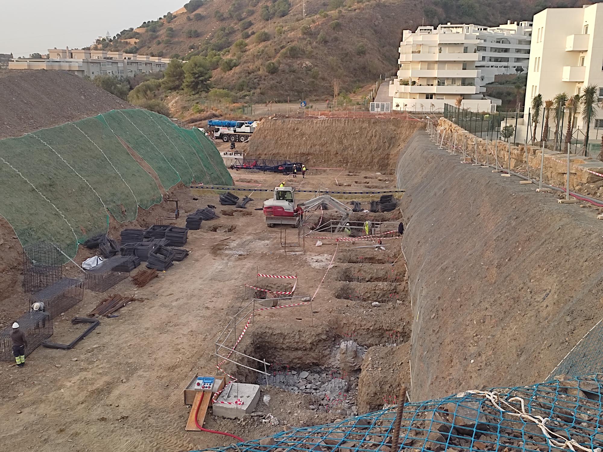 Los trabajos de cimentación de la parcela están al 80 % de ejecución, mediante la realización de pilotes con encepados.