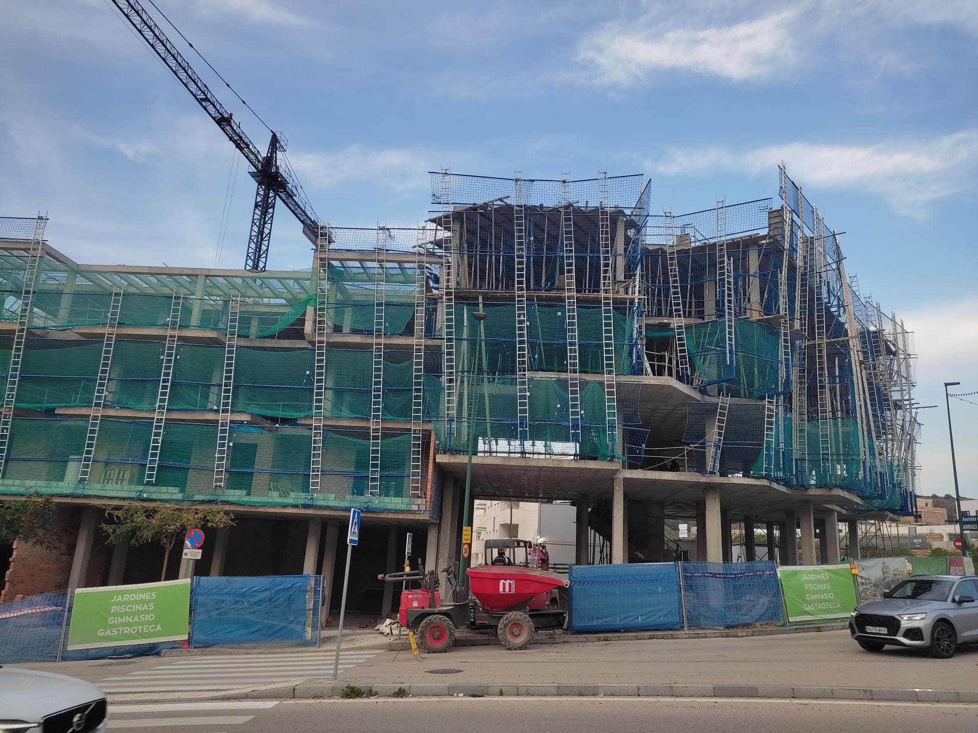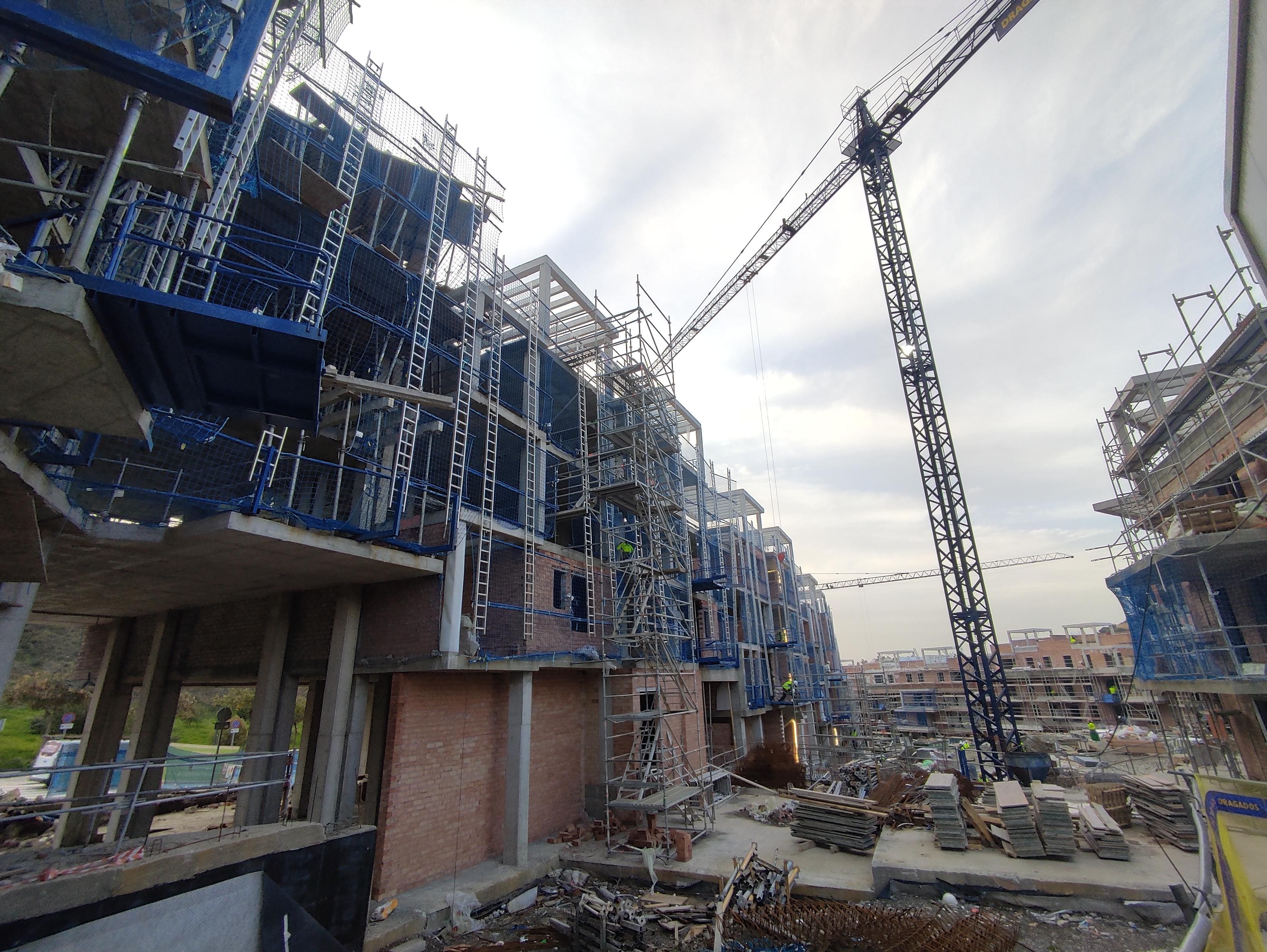 La obra se encuentra con la estructura terminada y a falta de albañilería exterior en 4 portales.