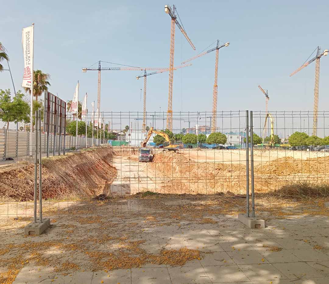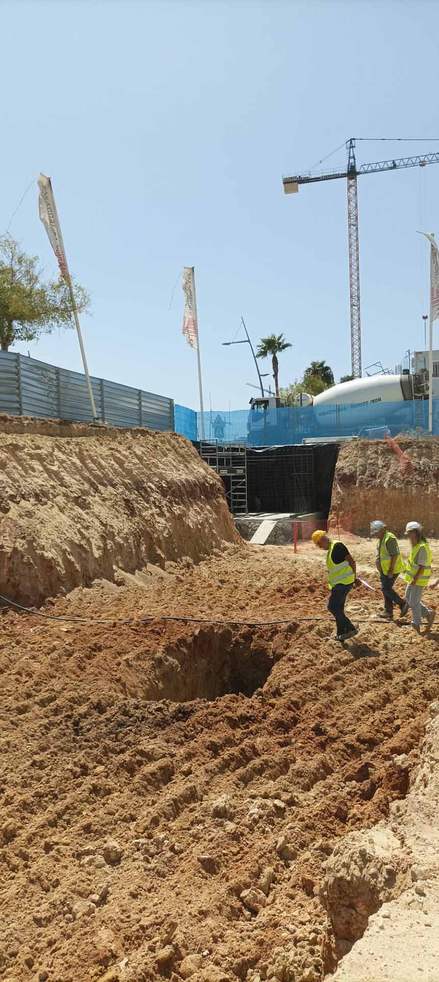 Se ha ejecutado la zona central con pantalla de pilotes y se han iniciado los bataches del muro de contención perimetral.