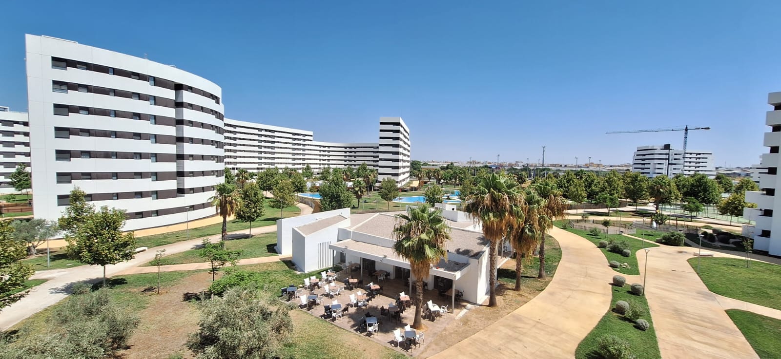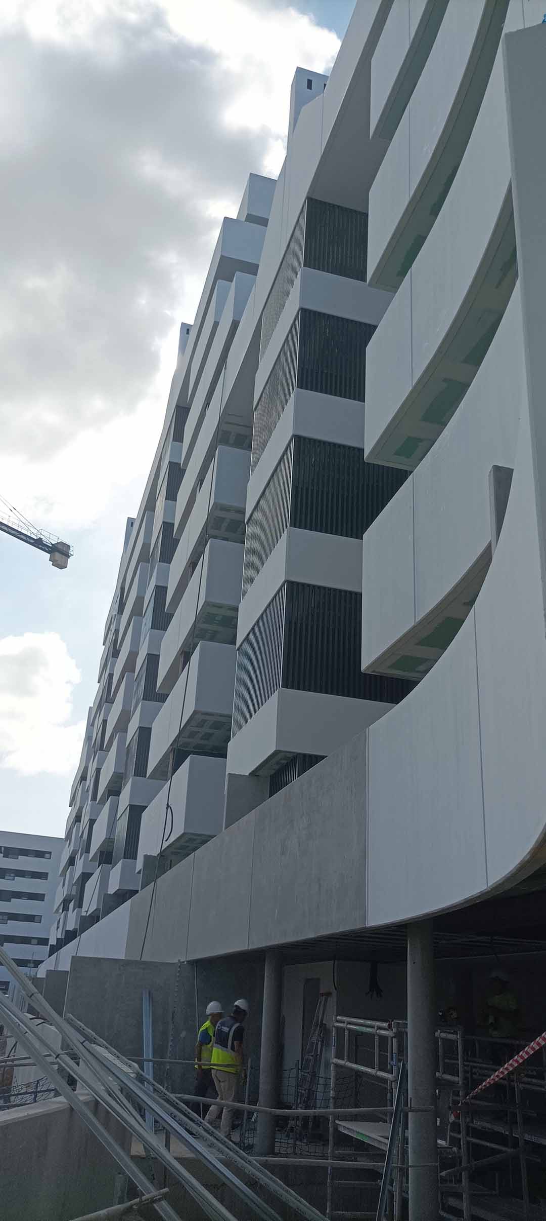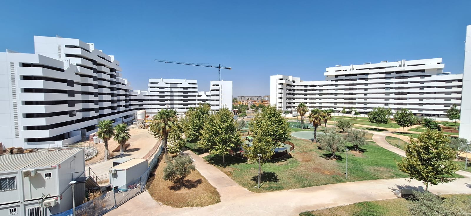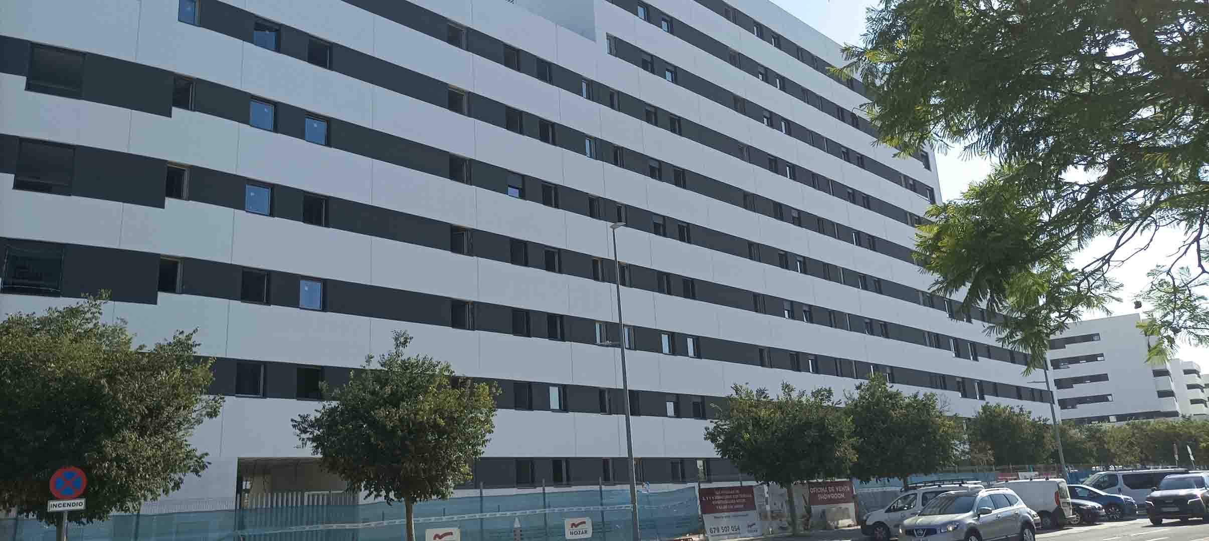 En cuanto a los acabados interiores, continúa la colocación de suelos laminados y carpintería interior de madera en el bloque 5, estando ya finalizados los bloques 6, 7, 8 y 9. También se avanza en la colocación de solados y alicatados en cocinas y baños del bloque 4, estando concluidos dichos trabajos en los bloques 5, 6, 7, 8 y 9.