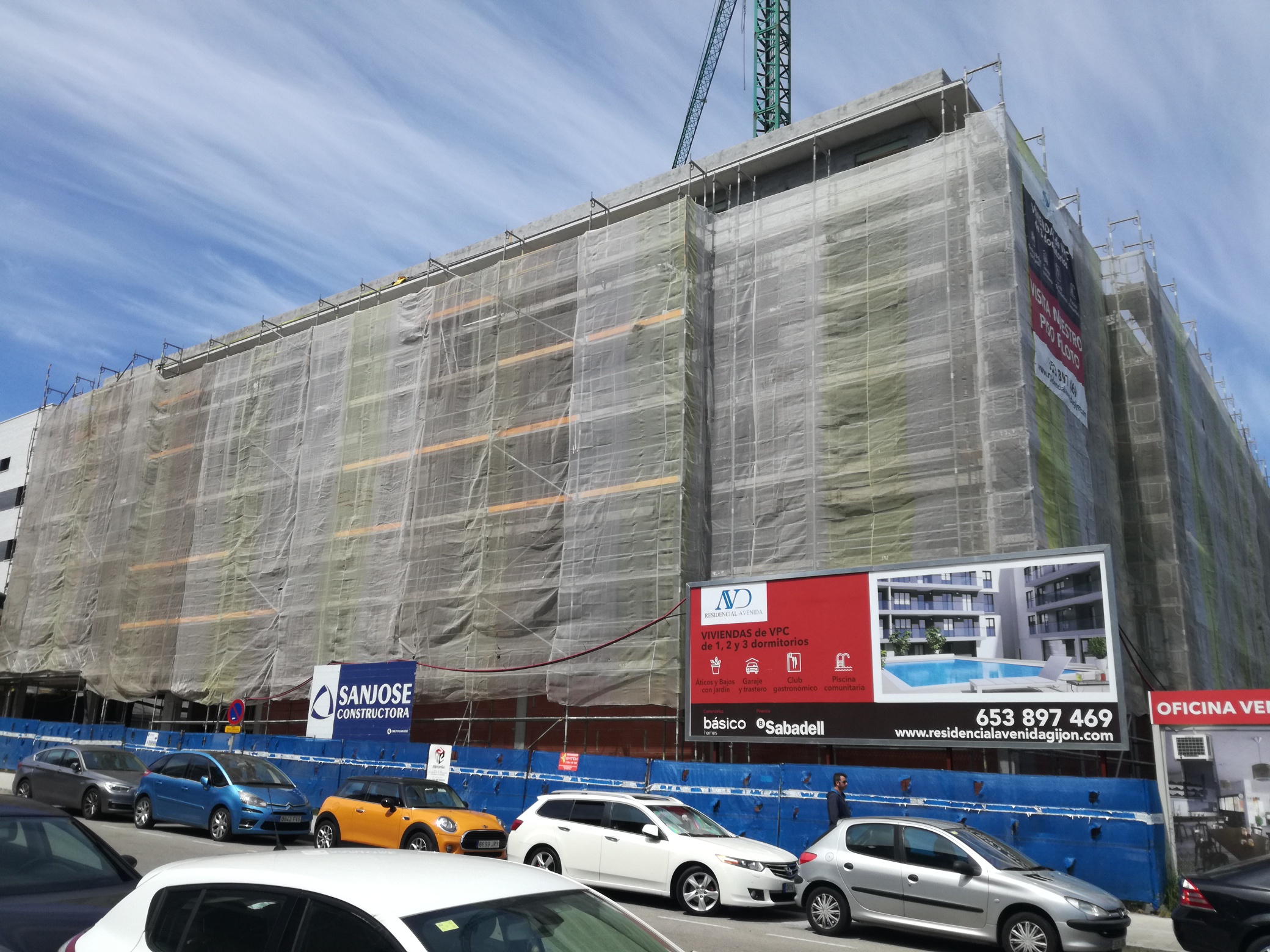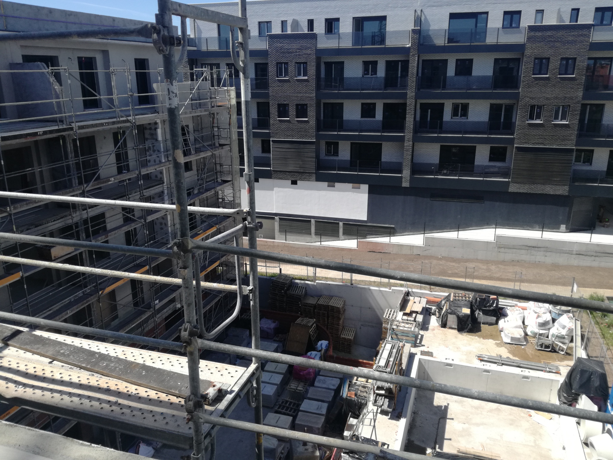 A 30/04/2019 se ha concluido la cimentación, los rellenos, la estructura y la ejecución de cubierta del edificio. Así mismo, se han concluido las particiones interiores con zonas comunes y casi al completo las divisiones interiores de viviendas, a falta de planta de áticos.