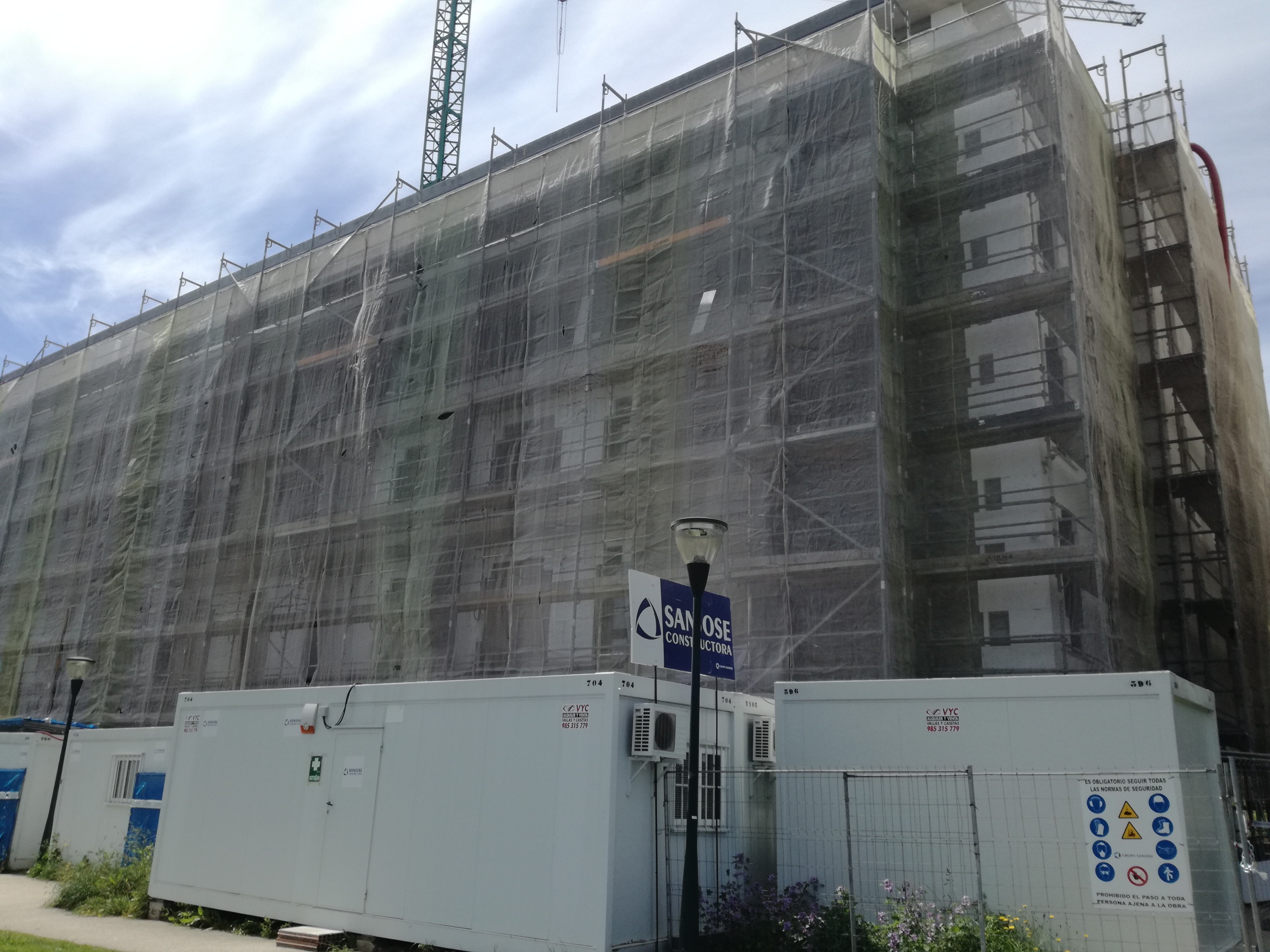 Del mismo modo, los ascensores ya están completamente instalados, a falta de su puesta en servicio, y la fachada está con el aislamiento al completo e iniciando el acabado final.
