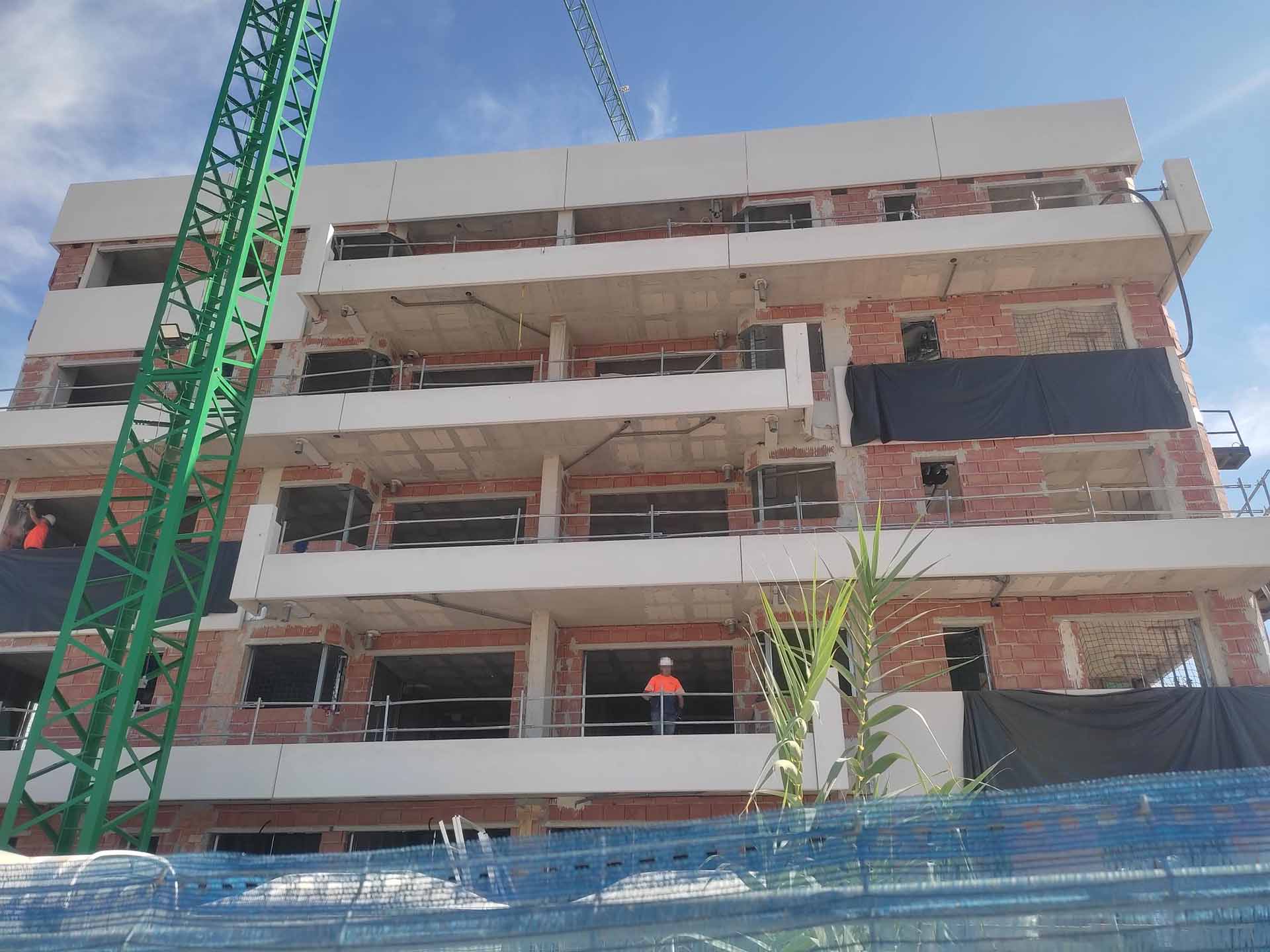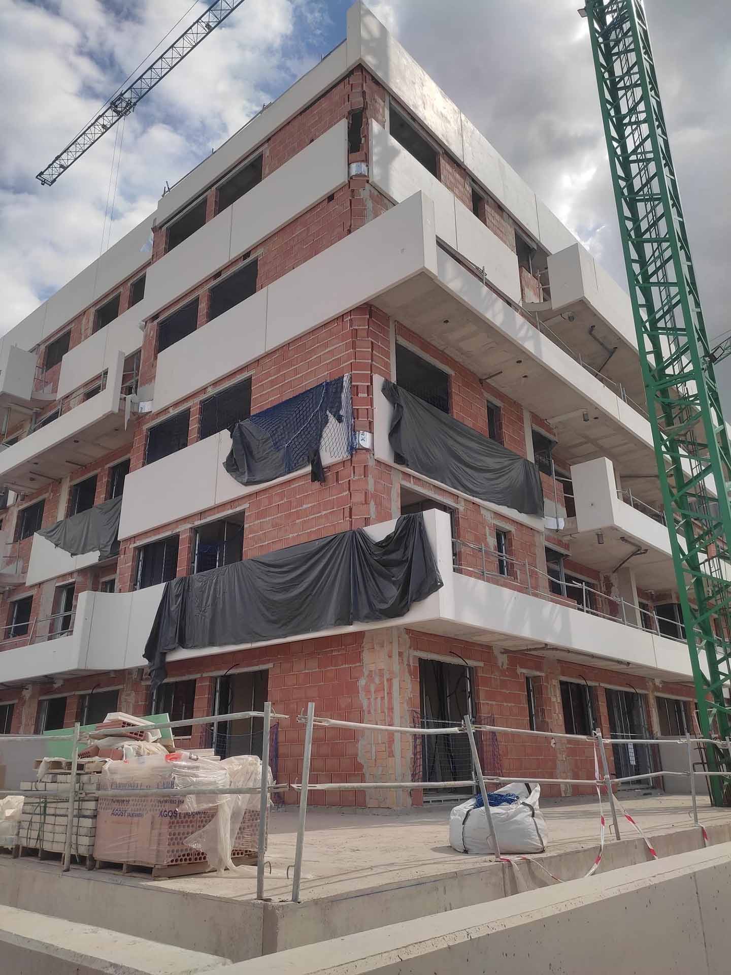 El bloque 1 cuenta con la fábrica de fachada completamente terminada, mientras que en el bloque 2 se encuentra ejecutada hasta la mitad.