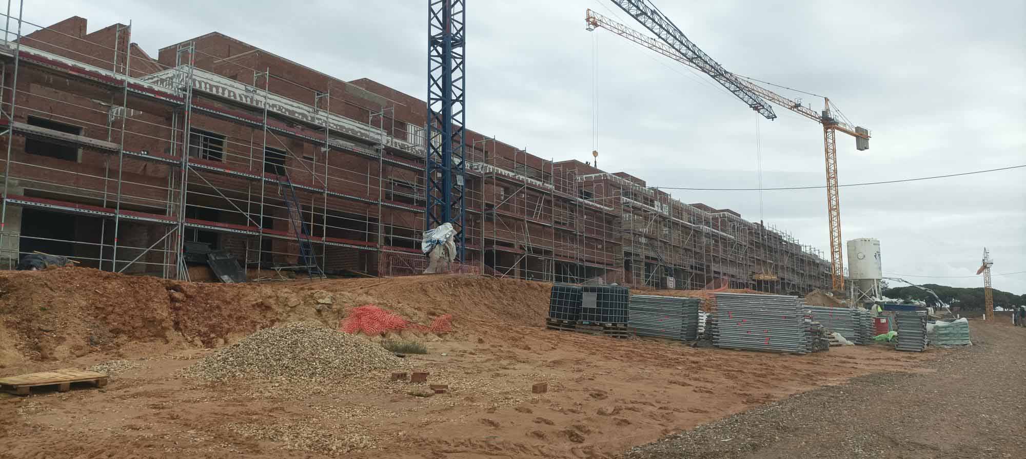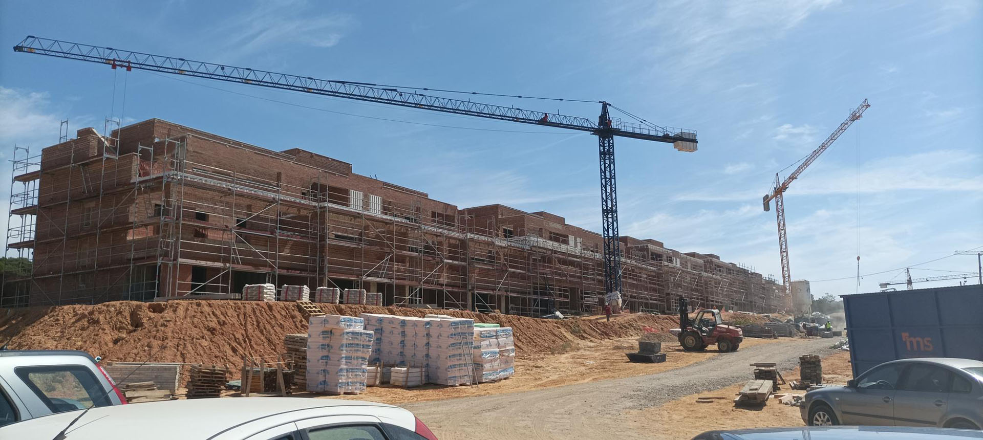En las fachadas, los bloques 5, 4, 3 y 2 se encuentran enfoscados, mientras que en el bloque 1 se continúa trabajando tanto en el enfoscado como en...