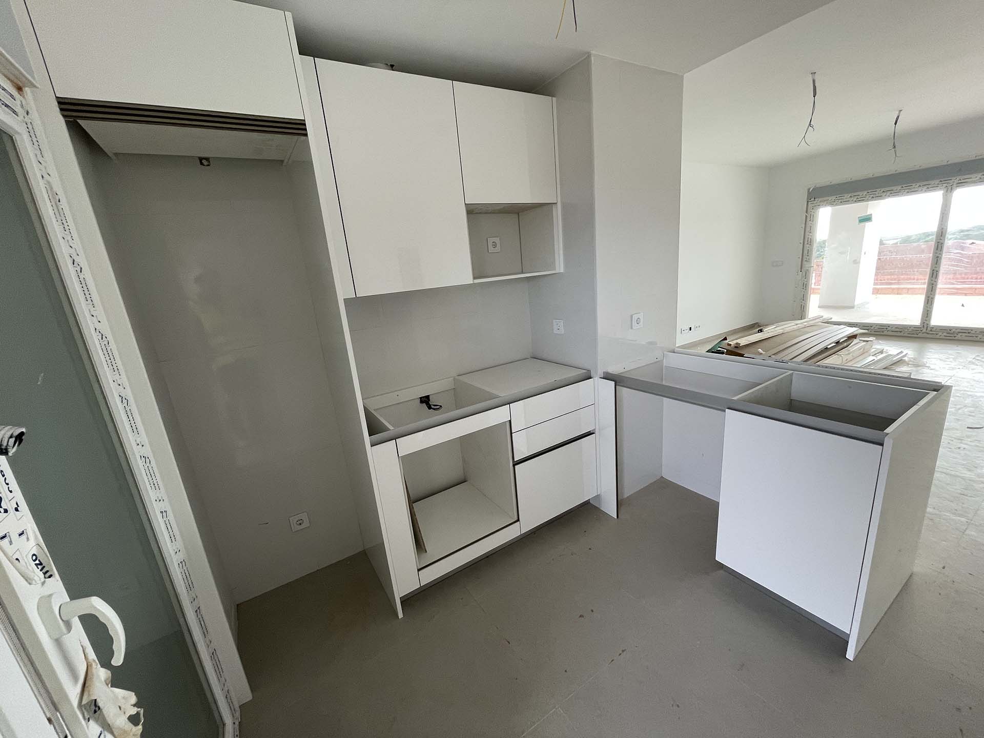 Las instalaciones están ejecutadas, pendientes únicamente del cableado en el portal 1. Además, se trabaja en los muros de urbanización y en la piscina, ya se están instalando los mecanismos en las viviendas y se están colocando los muebles de cocina.