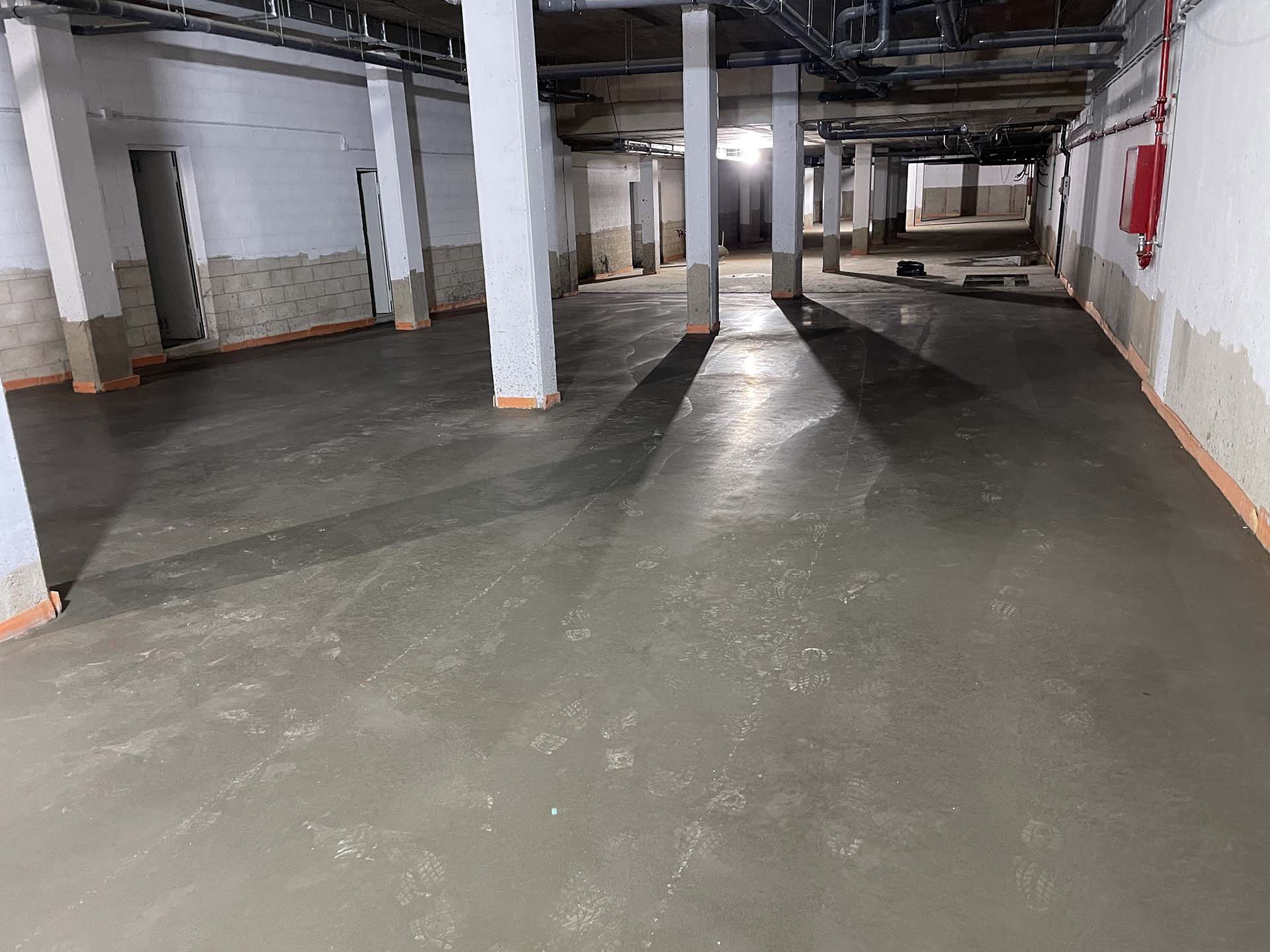 En el sótano, la solera fratasada está terminada en los bloques 1 y 2, en ejecución en el bloque 3.