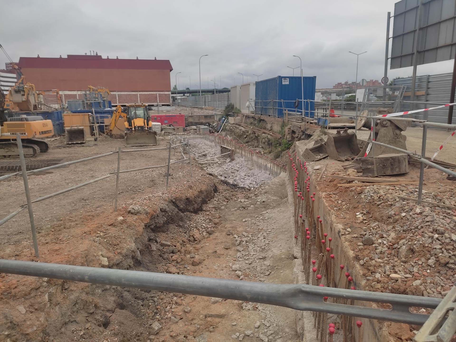 La obra se encuentra en fase de contención. Se sigue realizando el muro pantalla perimetral, actualmente con más del 80% ejecutado, antes de poder proceder con el vaciado.