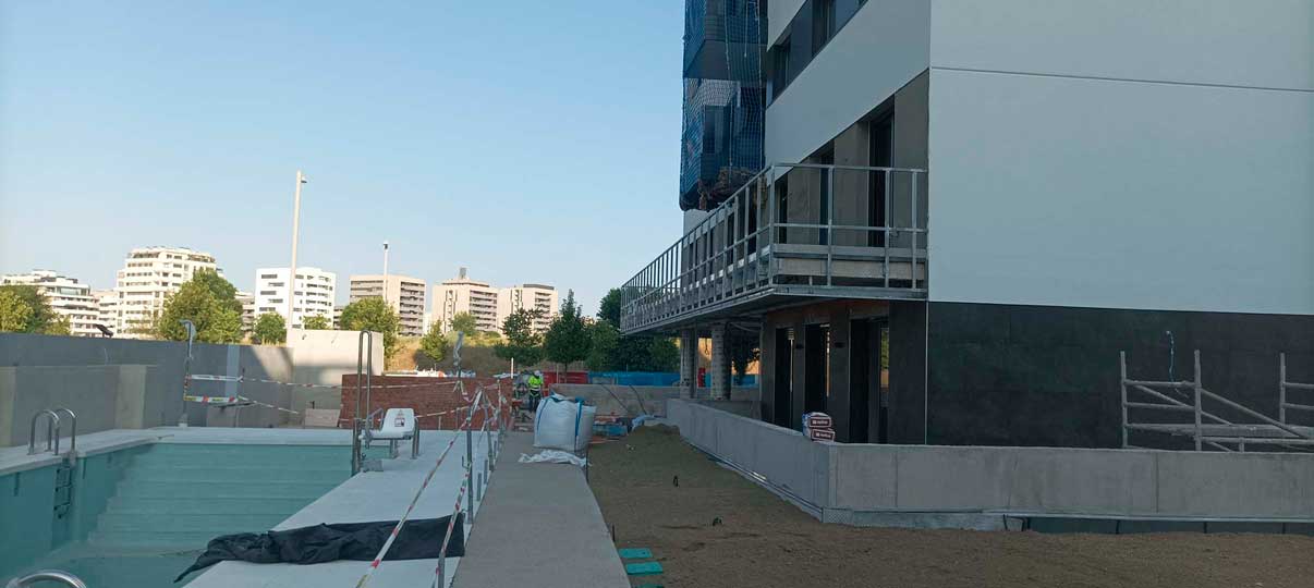 Avanzan los trabajos de acabados en zonas comunes interiores, en barandillas de vidrio y composite de terrazas.