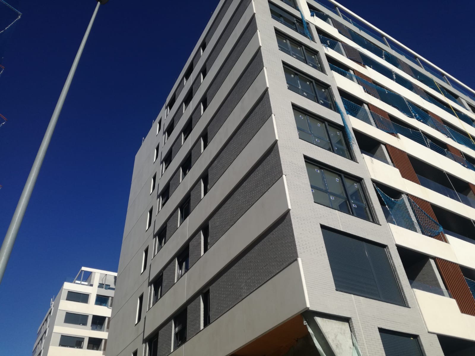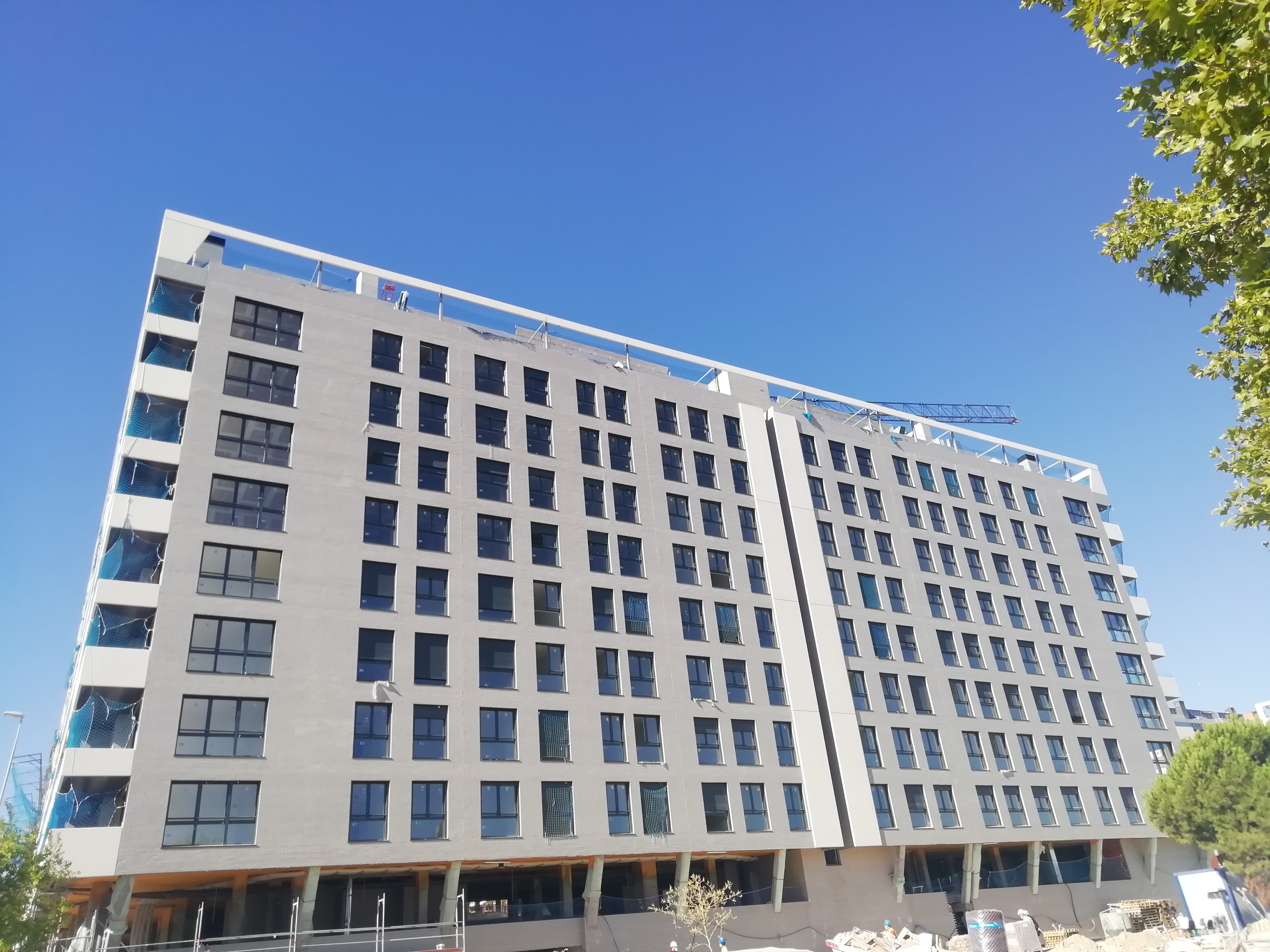 Continua la instalación de carpinterías interiores, así como del mobiliario de cocinas. Y se realizan repasos y remates en el interior de las viviendas y zonas comunes.